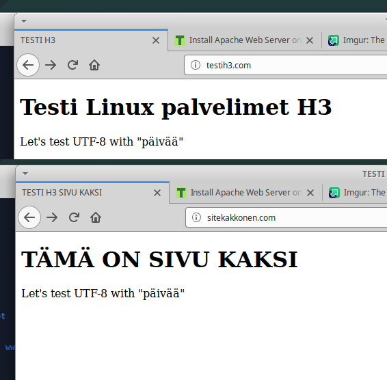 Jolloin sain molemmat sivut näkymään omien domainiensa alla.