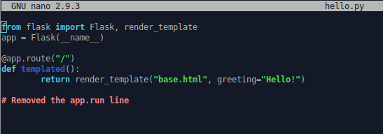 a) Hello Flask! Tee Python Flask hei maailma kehitysympäristössä. Voit siis käyttää tuotantoon sopimatonta app.run(debug=True) ajoa.