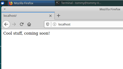 Harjoituksessa käytetyssä virtuaalikoneessa oli jo valmiiksi asennettu Salt master-slave installaatio aikaisemman harjoituksen pohjalta, joten en asentanut sitä uudestaan. Päätin säätää Apache2-demonin käyttäjien kotisivujen asetukset Tero Karvisen ohjeen mukaan. Tätä varten asensin Apachen komennolla ”sudo apt-get install apache2”. Tein myös reiän palomuuriin porttiin 80 komennolla ”sudo ufw allow 80/tcp”. Tämän jälkeen testasin asennuksen toimivuutta avaamalla localhost-osoitteen verkkoselaimesta, joka näyttikin Apachen default-verkkosivua. Muutin vielä verkkosivun sisällön tästä default-sivusta komennolla ”echo ”Cool stuff, coming soon!”|sudo tee /var/www/html/index.html”, jolloin localhost osoitteessa näkyi tehty muutos.