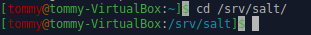 Poistin aluksi lisäämäni rivin .bashrc-tiedostosta ja käynnistin terminaalin uudestaan, jolloin terminaalin promptin värit vaihtuivat takaisin oletuksiin. Loin uuden kansion komennolla ”sudo mkdir /srv/salt/bash”. Tein tämän kansion sisälle .sls -tiedoston komennolla ”sudoedit init.sls” johon kirjoitin seuraavan: